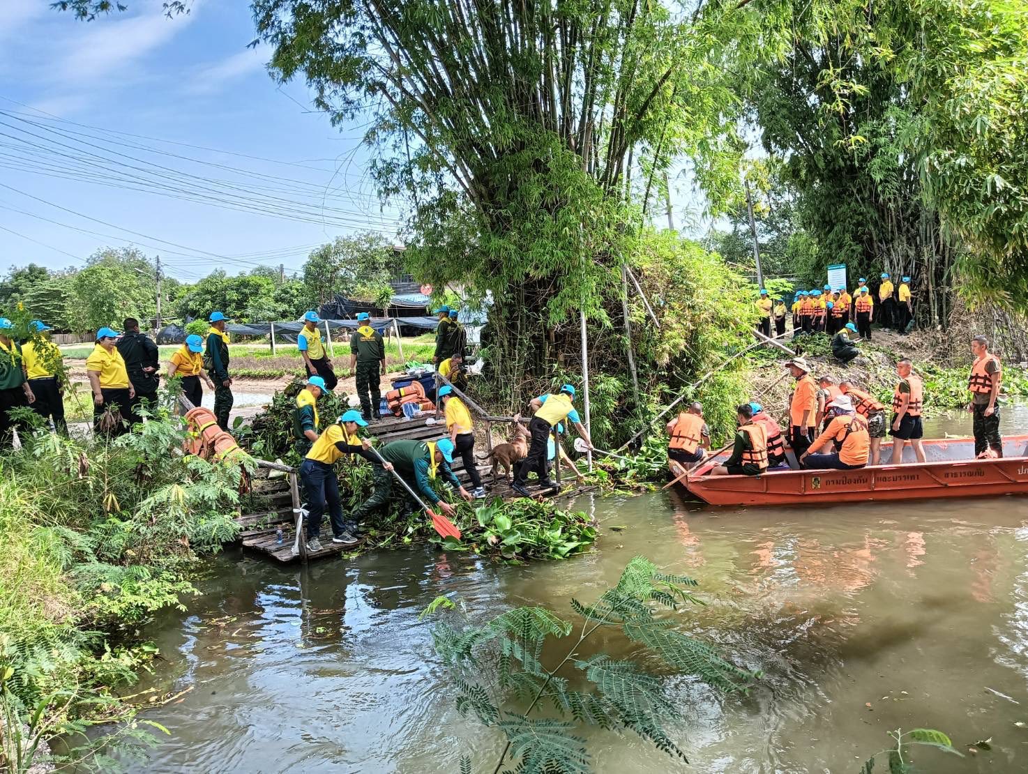 วันที่ 22 ต.ค. 68 เวลา 0930 พล.ต.พงศ์กฤษฏ์ รุจิโยธิน ผบ.มทบ.21/ ผอ.ศอ.จอส.มทบ.21 พร้อมด้วย จิตอาสา 904 และ จิตอาสาพระราชทาน ของหน่วย ร่วมกับส่วนราชการ นศท.จิตอาสา และประชาชนจิตอาสาในชุมชนลำตะคองเก่า ร่วมทำกิจกรรมจิตอาสาพัฒนาลำน้ำ ลำตะคลองเนื่องในวันปิยมหาราช 23 ต.ค.68 เพื่อกำจัดผักตบชวาและสิ่งกีดขวางทางลำน้ำ ในการแก้ไขปัญหาการระบายน้ำ ไม่ให้น้ำท่วมในชุมชน ช่วงบริเวณหลังโรงเรียนปลูกปัญญา ชุมชนตะคองเก่า ต.ในเมือง อ.เมืองฯ จว.น.ม.โดยมี พล.ท. วีระยุทธ รักษ์ศิลป์ มทภ.2 เป็นประธานในพิธี