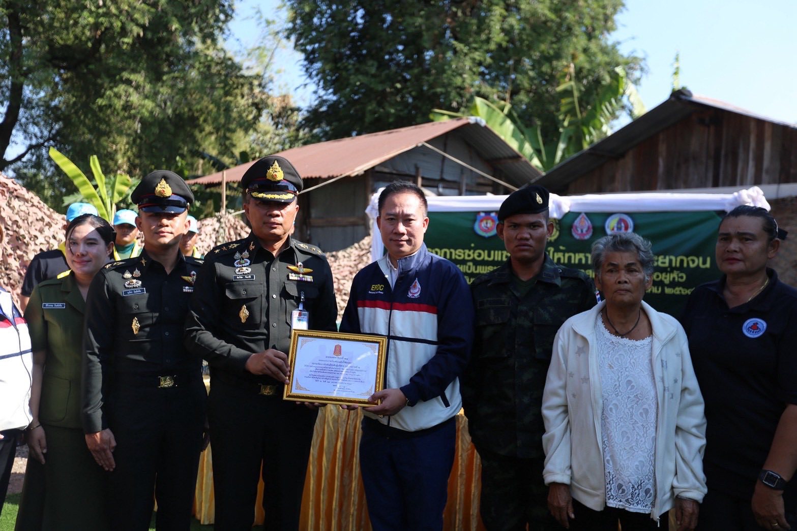 เมื่อวันที่ 27 ม.ค.69 เวลา 1000 พ.อ.สมโชค จันทาสี รอง ผบ.มทบ.21 เป็นประธานในพิธีมอบบ้านตามโครงการ “ซ่อมแซมบ้านให้ทหารกองประจำการที่มีฐานะยากจน” เพื่อถวายเป็นพระราชกุศลแด่ สมเด็จพระเจ้าอยู่หัว เนื่องในโอกาสวันเฉลิมพระชนมพรรษา 73 พรรษา โดย มทบ.21 ร่วมกับ ชมรบ พคบ. จว.น.ม. และ ชมรม พสบ.ทภ.2 สนับสนุนงบประมาณปรับปรุงบ้านให้กับ พลฯ ภัควัต จารุสาร ทหารใหม่ ผลัดที่ 2/68 สังกัด ร้อย.บก.พัน.ร.มทบ.21 ณ บ้านเลขที่ 58 หมู่ 2 บ้านโนนมะเกลือ ต.หนองหัวฟาน อ.ขามสะแกแสง จว.น.ม.และในโอกาสนี้ได้ร่วมมอบเสื้อกันหนาวและผ้าห่ม ที่ได้รับการสนับสนุนจาก ทบ. เพื่อคลายความหนาวให้กับประชาชนในพื้นที่โดยรอบ