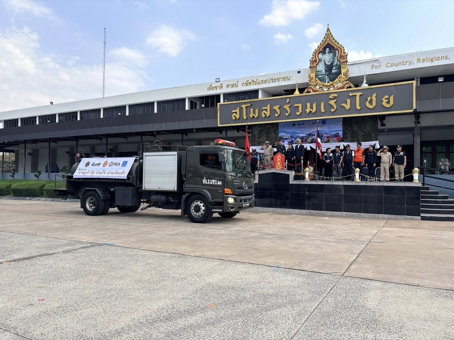 เมื่อ 5 มีนาคม 2569 เวลา 1400 พล.ต.พงศ์กฤษฏ์ รุจิโยธิน ผบ.มทบ.21/ ผอ.ศบภ.มทบ.21 เป็นประธานในพิธีเปิดโครงการ "ราษฎร์ รัฐ ร่วมใจ ช่วยภัยแล้ง" ประจำปี 2569 พื้นที่ มทบ.21 โดยบูรณาการกำลังพล และยานพาหนะ ร่วมกับ ภาคีเครือข่ายของ ทบ. ได้แก่ บริษัท ปตท.จำกัด (มหาชน), กรมทรัพยากรน้ำบาดาล , การประปาส่วนภูมิภาค และการไฟฟ้าส่วนภูมิภาค พร้อมภาคีเครือข่ายในพื้นที่ได้แก่ ศูนย์ป้องกันและบรรเทาสาธารณภัย เขต 5 ,สำนักงานป้องกันและบรรเทาสาธารณภัย จว.น.ม., อบจ.น.ม.,ทน.น.ม. ,ทต.โพธิ์กลาง, ทต.หนองไผ่ล้อม, ตำรวจภูธรจังหวัดนครราชสีมา เพื่อประสานความร่วมมือ ระดมทรัพยากรแก้ไขปัญหาความเดือดร้อนของประชาชนที่ประสบปัญหาภัยแล้ง ขาดแคลนน้ำอุปโภคบริโภค ณ ลานพื้นแข็งบริเวณหน้าสโมสรร่วมเริงไชย ค่ายสุรนารี อ.เมือง จว.น.ม. ในการนี้ได้แจกจ่ายน้ำอุปโภค - บริโภคเพื่อบรรเทาความเดือดร้อนในขั้นต้น จำนวน 3 พื้นที่ ปริมาณน้ำรวม18,000 ลิตร