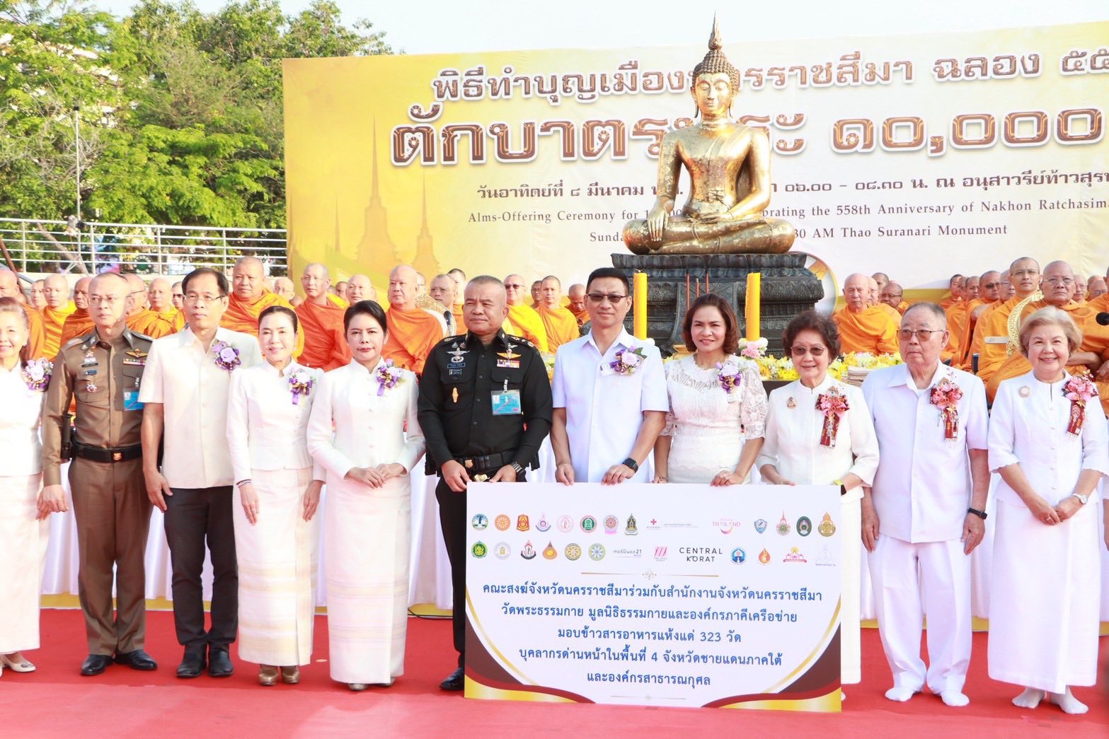 เมื่อวันที่ 8 มี.ค.69 เวลา 0600 พล.ต.พงศ์กฤษฏ์ รุจิโยธิน ผบ.มทบ.21 พร้อมด้วย คุณวิวรรณ รุจิโยธิน ประธาน สม.ทบ.สาขา มทบ.21 ร่วมพิธีทำบุญเมืองนครราชสีมา ฉลอง 558 ปี ตักบาตรพระ 10,000 รูป โดยมี นายวิจิตร กิจวิรัตน์ รองผู้ว่าราชการจังหวัดนครราชสีมา เป็นประธานในพิธี ณ ลานอนุสาวรีย์ท้าวสุรนารี อ.เมืองฯ จว.น.ม.
