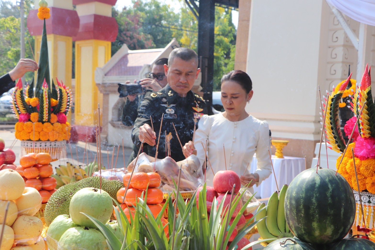 เมื่อวันที่ 22 มี.ค.69 เวลา 0930 พล.ต.พงศ์กฤษฏ์ รุจิโยธิน ผบ.มทบ.21 พร้อมด้วย คุณวิวรรณ รุจิโยธิน ประธาน สม.ทบ.สาขา มทบ.21 ร่วมพิธีบวงสรวงและสักการะ เนื่องในวันฉลองชัยชนะท้าวสุรนารี ประจำปี 2569 โดยมี พล.ท.วีระยุทธ รักศิลป์ มทภ.2 เป็นประธานในพิธี ณ อนุสาวรีย์ท้าวสุรนารี บริเวณหน้าประตูค่ายสุรนารี
