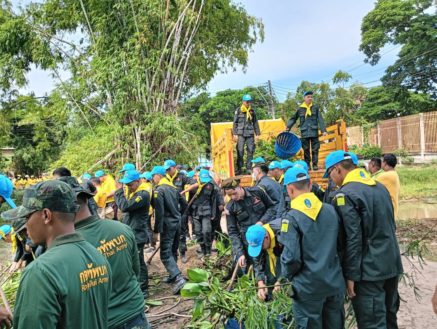 วันที่ 22 ต.ค. 68 เวลา 0930 พล.ต.พงศ์กฤษฏ์ รุจิโยธิน ผบ.มทบ.21/ ผอ.ศอ.จอส.มทบ.21 พร้อมด้วย จิตอาสา 904 และ จิตอาสาพระราชทาน ของหน่วย ร่วมกับส่วนราชการ นศท.จิตอาสา และประชาชนจิตอาสาในชุมชนลำตะคองเก่า ร่วมทำกิจกรรมจิตอาสาพัฒนาลำน้ำ ลำตะคลองเนื่องในวันปิยมหาราช 23 ต.ค.68 เพื่อกำจัดผักตบชวาและสิ่งกีดขวางทางลำน้ำ ในการแก้ไขปัญหาการระบายน้ำ ไม่ให้น้ำท่วมในชุมชน ช่วงบริเวณหลังโรงเรียนปลูกปัญญา ชุมชนตะคองเก่า ต.ในเมือง อ.เมืองฯ จว.น.ม.โดยมี พล.ท. วีระยุทธ รักษ์ศิลป์ มทภ.2 เป็นประธานในพิธี