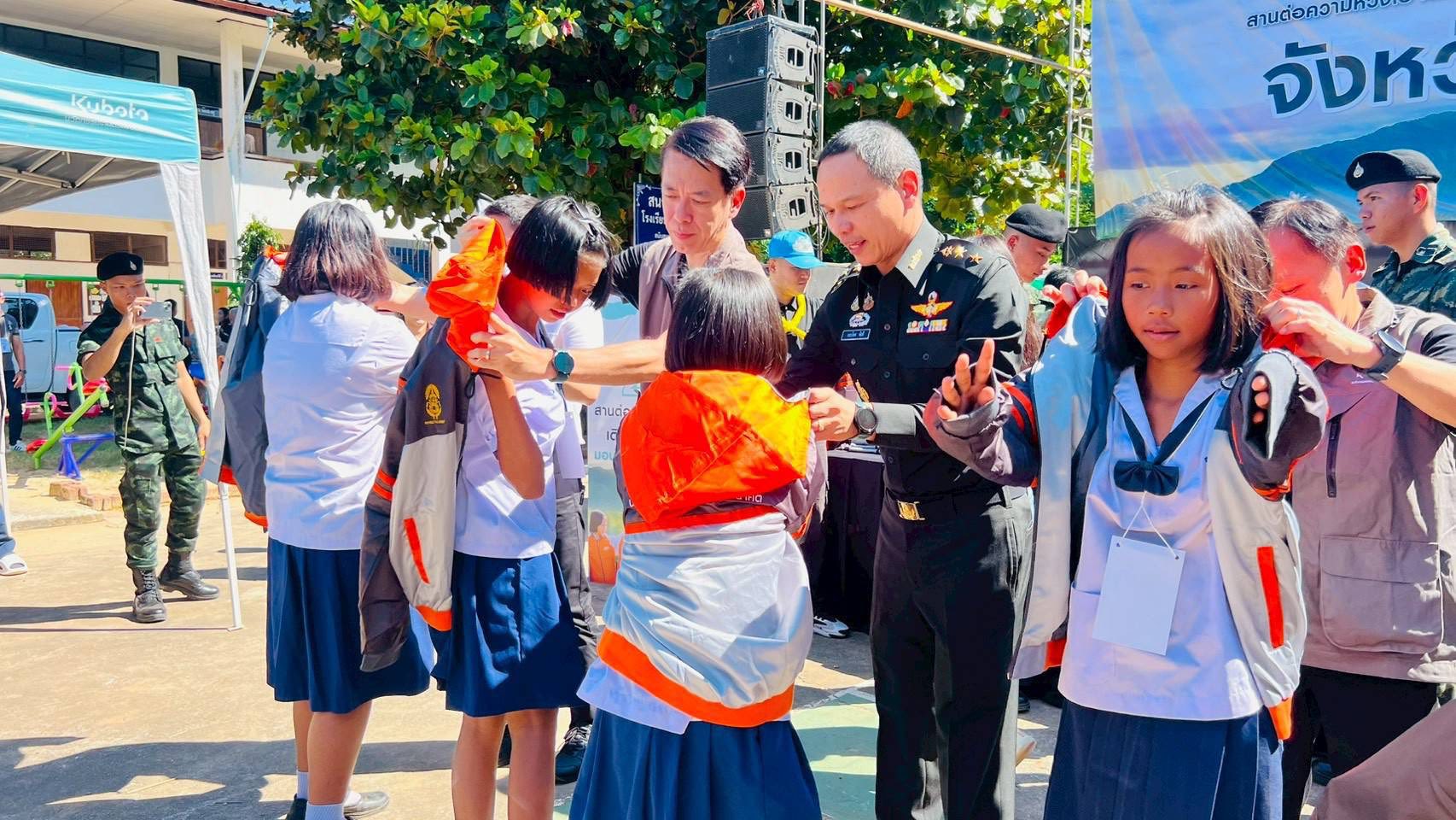 วันที่ 29 ต.ค.68 เวลา 0930 พ.อ. กอบโชค หัสดี รอง ผอ.รมน.จังหวัด ช.ย.(ท.) เป็นผู้แทน ผบ.มทบ.21 ร่วมพิธีมอบเสื้อกันหนาว ภายใต้โครงการ "KUBOTA พลังใจต้านภัยหนาว ปี 2568" เพื่อช่วยเหลือผู้ประสบภัยหนาว ในจังหวัดชัยภูมิ จำนวน 4,500 ตัว ณ โรงเรียนบ้านหนองแวง ต.ซับสีทอง อ.เมืองชัยภูมิ โดยมี นายบัลลังก์ ไวทย์ศิริ รองผู้ว่าราชการจังหวัดชัยภูมิ เป็นประธานในพิธีฯ ในการนี้ ศอ.จอส.พระราชทาน มทบ.21 ได้อำนวยการนำกำลังจิตอาสาร่วมอำนวยความสะดวก และดูแลประชาชนที่เข้าร่วมกิจกรรม