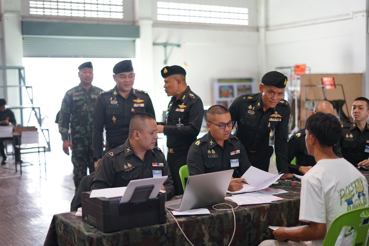 วันที่ 13 ธ.ค.68 เวลา 10.00 น. พ.อ.อมรวัฒน์ มัจฉา รอง ผบ.มทบ.21(2) ได้เดินทางมาตรวจเยี่ยมและสังเกตการณ์การคัดเลือกทหารออนไลน์ ประจำปี 2569 ครั้งที่ 2 ณ โรงกีฬาอเนกประสงค์ค่ายสุรนารี จังหวัดนครราชสีมา โดยได้พบปะพูดคุยกับน้องๆ ทหารที่มาทำการคัดเลือก และญาติทหาร รวมถึงได้พบปะกับหน่วยรับทหาร ทั้ง 52 หน่วย โดยมี พ.อ.วิเศษศิลป์ แสนภูวา หน.ฝ.สรรพกำลัง มทบ.21 เป็นผู้ติดตามและชี้แจงการปฏิบัติฯ