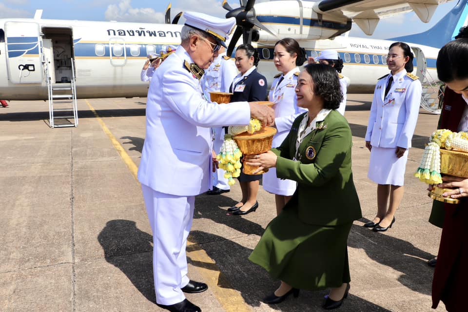 เนื่องด้วย พระบาทสมเด็จพระเจ้าอยู่หัว ทรงพระกรุณาโปรดเกล้าโปรดกระหม่อมให้ พล.อ.สุรยุทธ์ จุลานนท์ ประธานองคมนตรี เป็นผู้แทนพระองค์ไปมอบปริญญาบัตรแก่ผู้สำเร็จการศึกษาจากมหาวิทยาลัยเทคโนโลยีราชมงคลอีสาน ประจำปี 2566 ณ อาคารเฉลิมพระเกียรติ ในโอกาสฉลองพระชนมมายุ 5 รอบ 2 เม.ย. 2558 ศูนย์การศึกษาหนองระเวียง มทร.อีสาน อ.เมืองฯ จว.น.ม. เมื่อวันที่ 15 พ.ย. 67 เวลา 1030 พล.ต. อรรถชัย รักษาศิลป์ ผบ.มทบ.21 พร้อมด้วย ผศ.อารีรัตน์ รักษาศิลป์ ประธานสมาคมแม่บ้านทหารบก สาขา มทบ. 21 ร่วมรับ - ส่ง ผู้แทนพระองค์ มอบพวงมาลัย และมอบกระเช้าส่ง ณ สนามบิน บน.1 อ.เมืองฯ จว.น.ม.