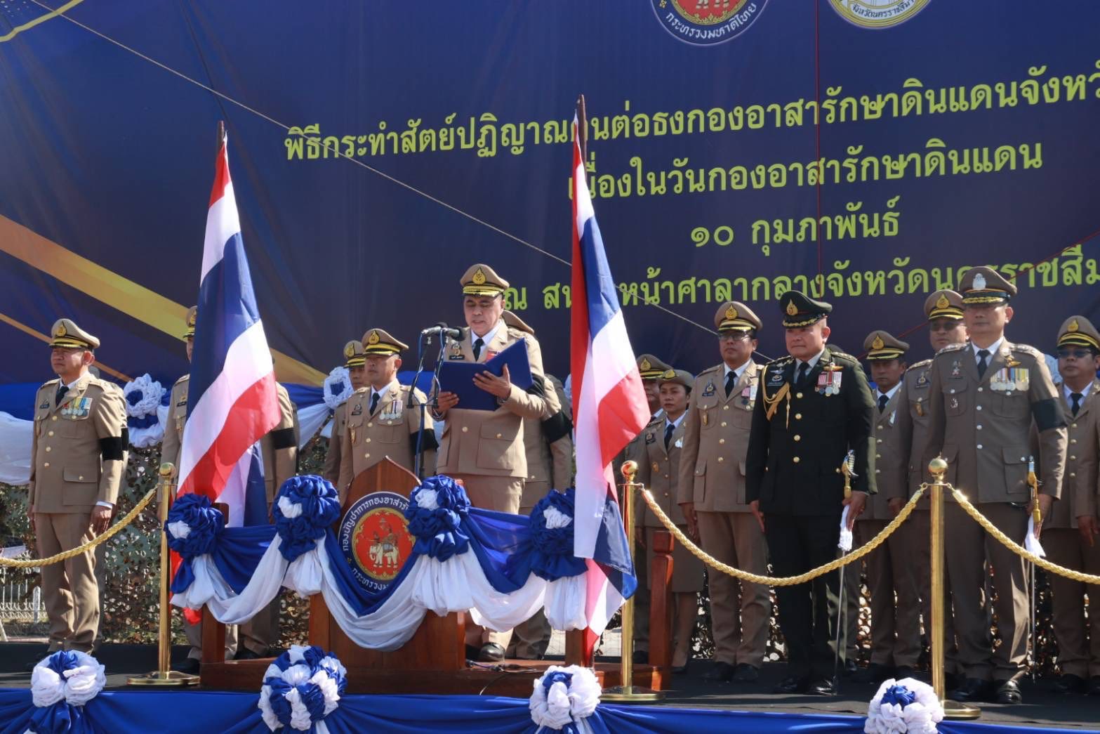 เมื่อวันพฤหัสบดีที่ 12 ก.พ.69 เวลา 0830 พ.อ.ฤทธิ์วิบูลย์ ศิริธนาพิพัฒน์ เสธ.มทบ.21 เป็นผู้แทน ผบ.มทบ.21 ร่วมเป็นเกียรติในพิธีชุมนุมผู้บังคับบัญชาเจ้าหน้าที่ และ สมาชิกกองอาสารักษาดินแดน/พิธีกระทำสัตย์ปฏิญาณตนต่อหน้าธงประจำกองและสวนสนาม เนื่องในวันคล้ายวันสถาปนากองอาสารักษาดินแดน ครบรอบ 72 ปี เพื่อระลึกถึงวีรกรรมของเล่าวีรชน กองอาสารักษาดินแดน ที่ได้ทุ่มเท เสียสละพลีชีพเพื่อประเทศชาติ โดยมีกิจกรรมประกอบด้วยการรับฟังสารของผู้บัญชาการกองอาสารักษาดินแดน/พิธีมอบทุนการศึกษาแก่บุตรสมาชิกของกองอาสารักษาดินแดนและมอบสิ่งของบำรุงขวัญ ณ สนามหน้าศาลากลาง จว.น.ม. โดยมี นายอนุพงศ์ สุขสมนิตย์ ผวจ.น.ม. เป็นประธานในพิธีฯ