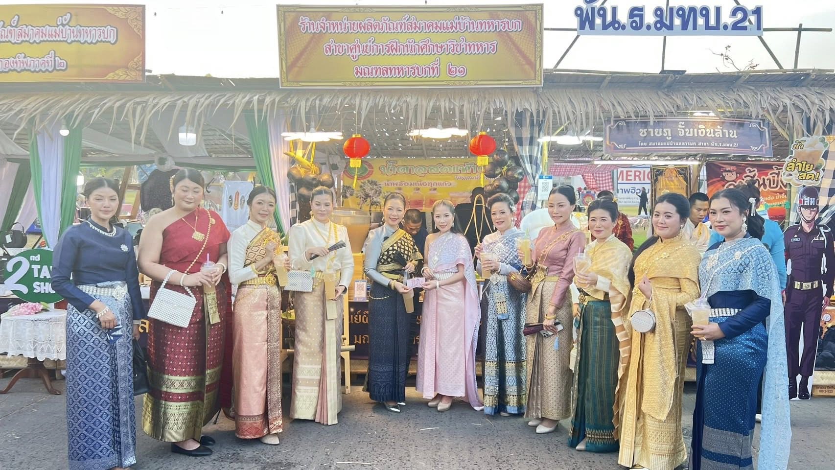13 ก.พ. 2569 พ.อ.อภิวัฒน์ แสงสูง ผบ.ศฝ.นศท.มทบ.21 พร้อมด้วย คุณ วิชุตา แสงสูง ประธานสมาคมแม่บ้านทหารบก สาขา ศฝ.นศท.มทบ.21 ได้จัดซุ้มจำหน่ายสินค้า น้ำตาลสด และหมูสะเต๊ะ เนื่องในงานน้อมรำลึกสมเด็จพระนเรศวรมหาราชกู้แผ่นดิน ปี 2569 ภายในงานยังมีตลาดย้อนยุค รวมถึงตลาดน้ำสมัยอโยธยา สินค้าที่เป็นของดีประจำจังหวัด กว่า 100 ร้านค้า ในราคาประหยัด ร่วมแต่งกายด้วยชุดไทยพระราชนิยม, ชุดไทยย้อนยุค และชุดไทยประยุกต์ เพื่อเป็นการร่วมสืบสานและสร้างสรรค์ความงดงามของผ้าไทยอีกด้วย ณ บริเวณลานด้านหน้าพระบรมราชานุสาวรีย์สมเด็จพระนเรศวรมหาราช ค่ายสุรนารี อ.เมือง จว.น.ม. โดยมี พล.ท. วีระยุทธ รักษ์ศิลป์ มทภ.2 เป็นประธาน
